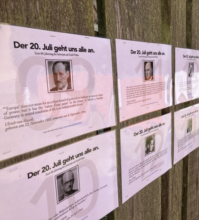 Unsere Open-Air-Ausstellung „Der 20. Juli geht uns alle an“ zeigt 80 Zitate von Widerstandskämpfern – in Kooperation mit der Stiftung 20. Juli 1944